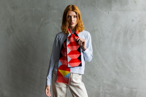 Scarlet Knitwear established in 2018 by Laura Ukstina celebrates traditional knitwear history introducing bold colour combinations and distinctive patterns.