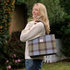 Our new 'Glencoe' Full Tweed Tote Bag (LB1048) is a modern style that beautifully shows off the Harris Tweed cloth. Available in a selection of colours but shown here in Colour 79, with matching cap, and Colour 15.