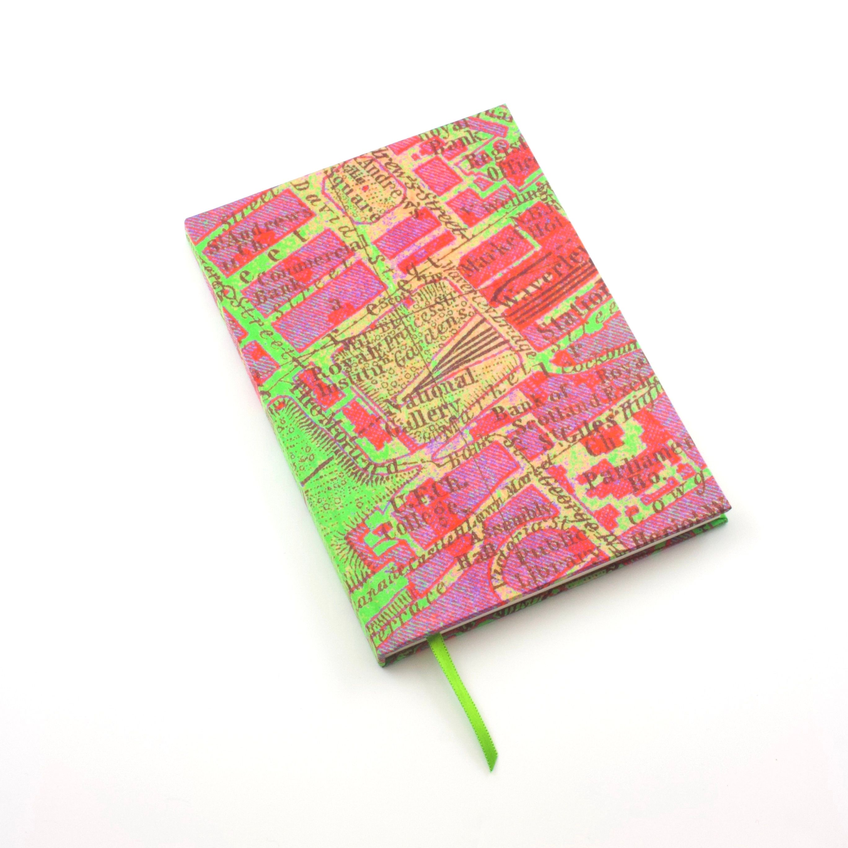 City on Cloth notebooks are made using the offcuts of silk produced during the printing of Helen's scarves in Macclesfield.