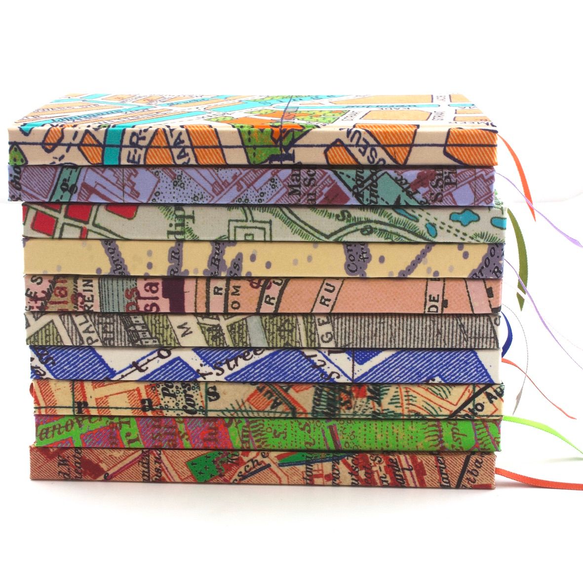 The fabric is selected and cut then send to Kapdaa The Offcut Company in Reading. The fabric is sent to India where the notebooks are produced using fully recycled materials and the highest ethical and sustainable standards. The notebooks are A5, 70 pages of plain paper with a toning fabric bookmark. There are lots of cities in the ever increasing range.