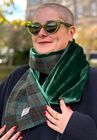 The scarves are backed with silk velvet in a toning, sometimes contrasting shade, and they have proved to be immensely popular. They measure approximately 155 x 22 cm and combine the hardiness of tweed with the luscious texture and colours of silk velvets. The scarves are dry clean only.