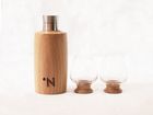 The 20cl oak flask and glasses with oak bases make a nice alternative to the hip flask. The flask is glass-lined and can be personalised, and the set comes in a sturdy padded bag.