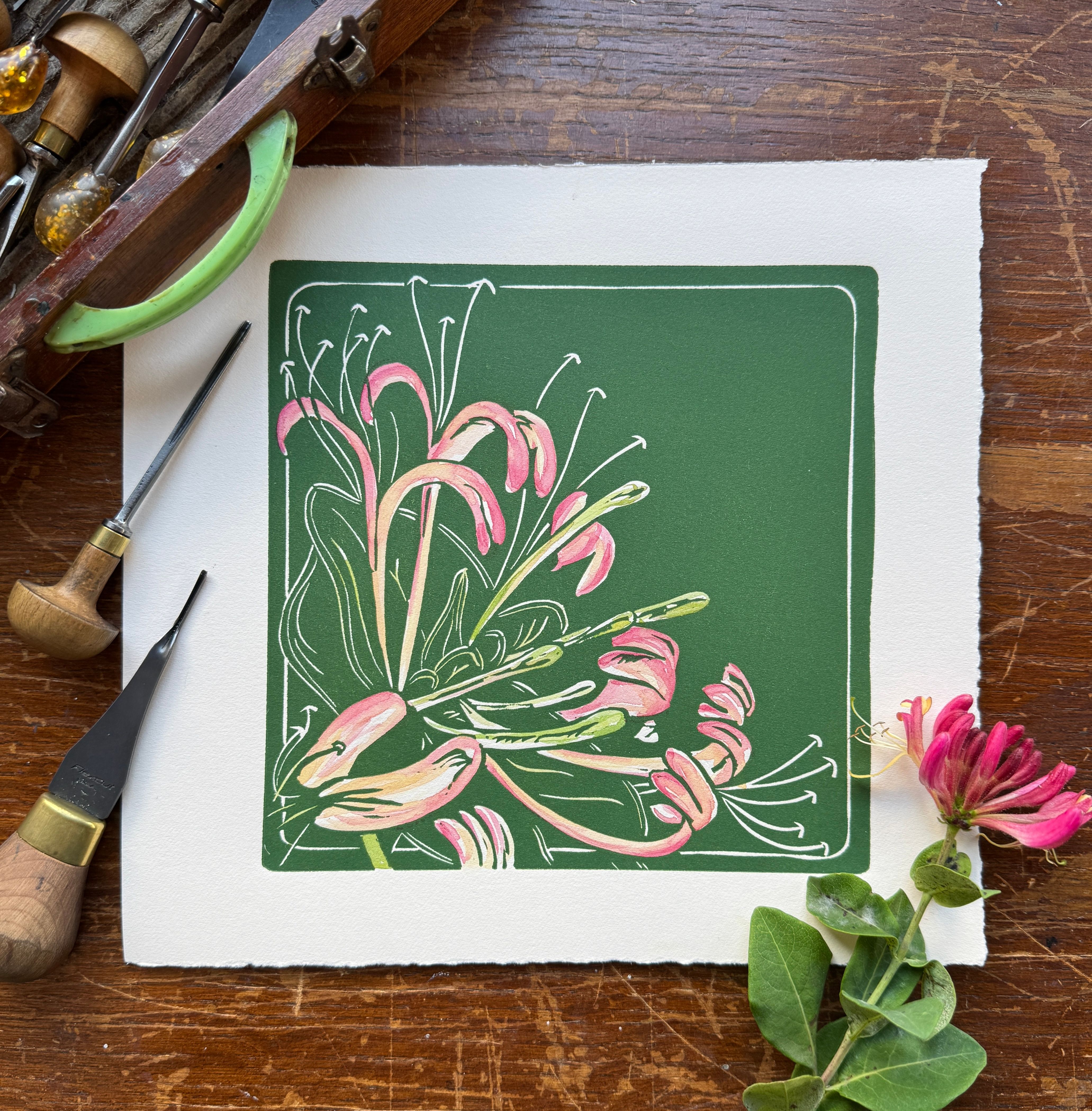 Carved, printed and coloured by hand, each limited edition linocut is created by Sarah. Editions are small at only 25, a true collectors item
