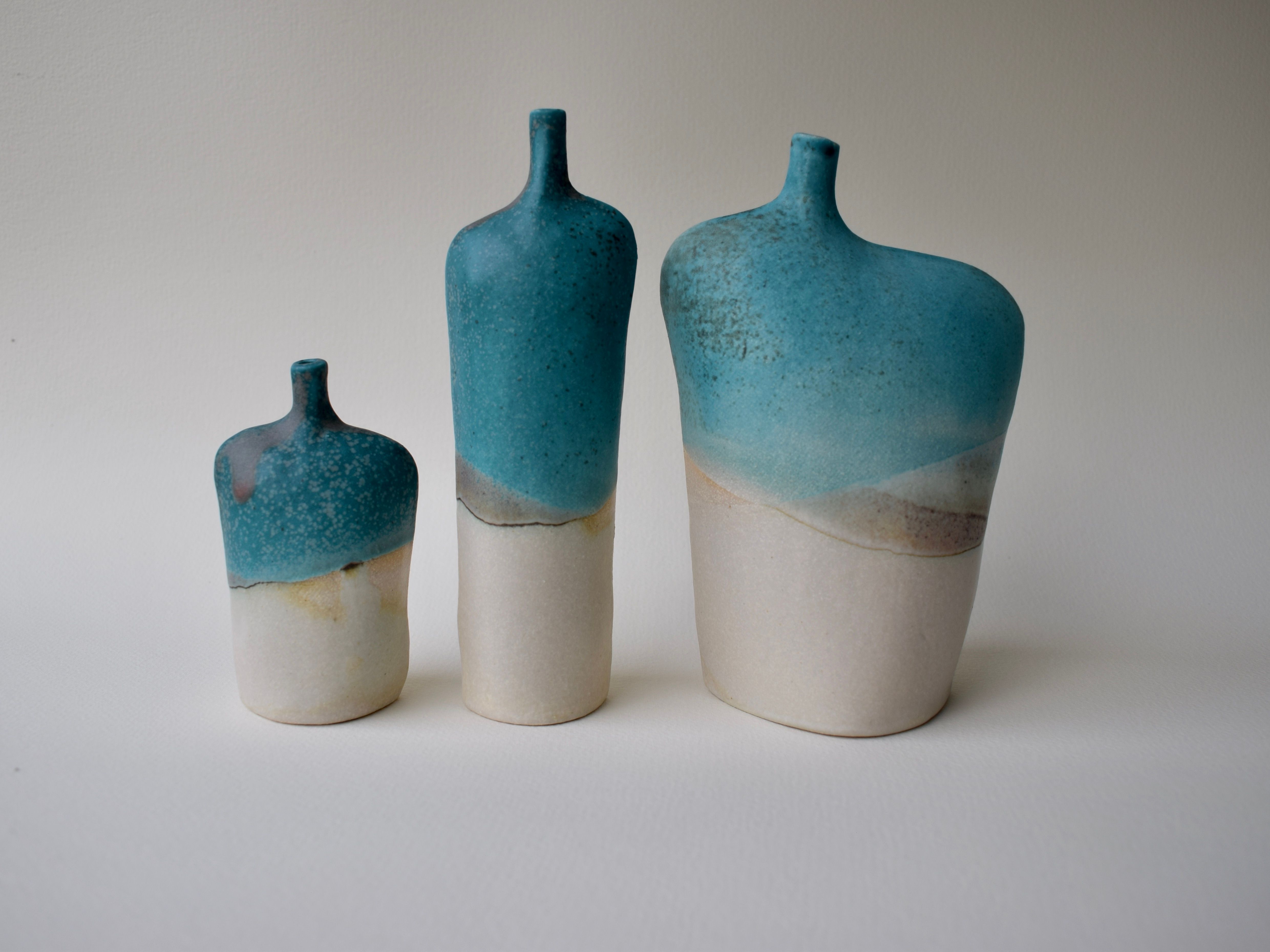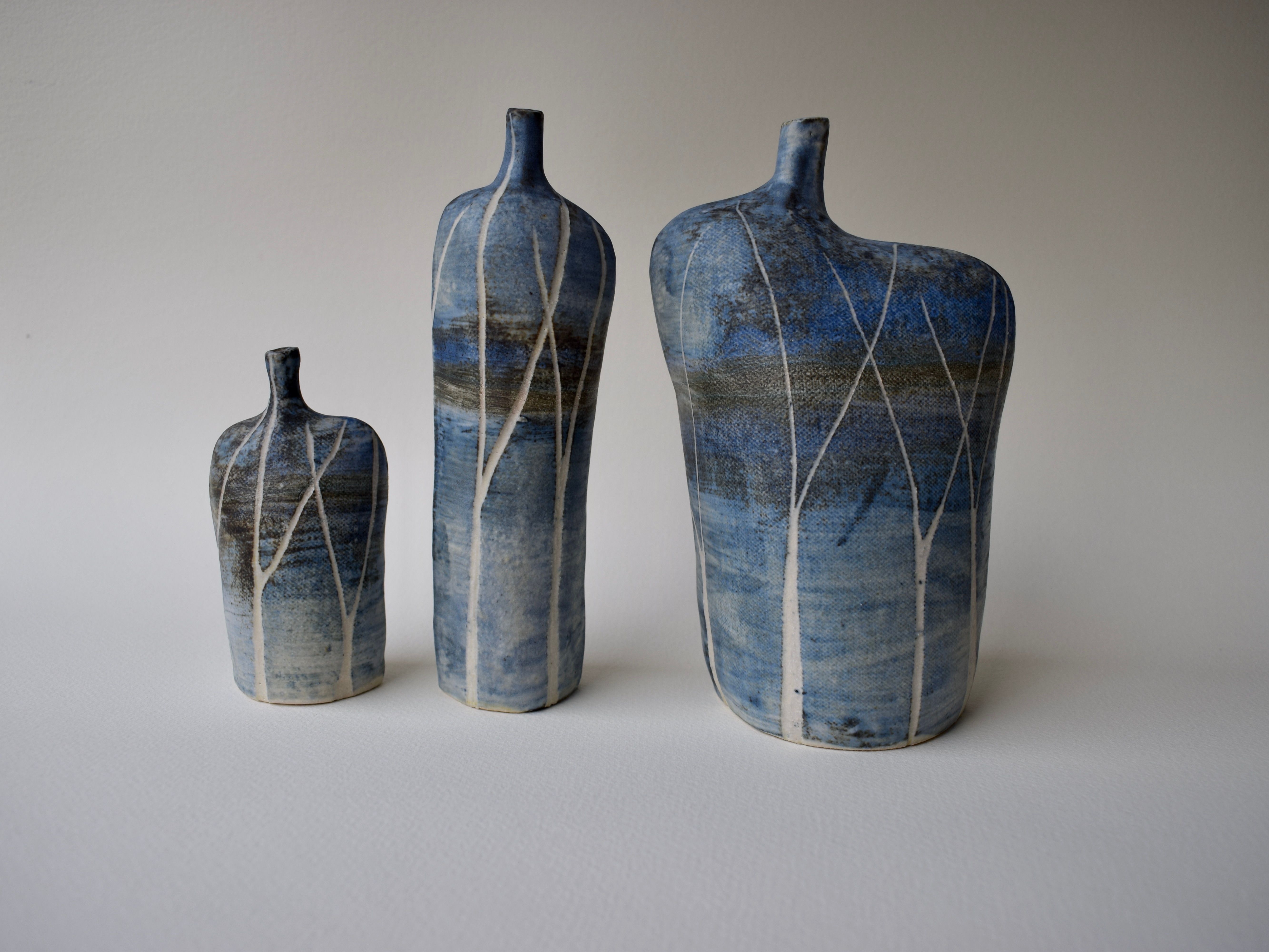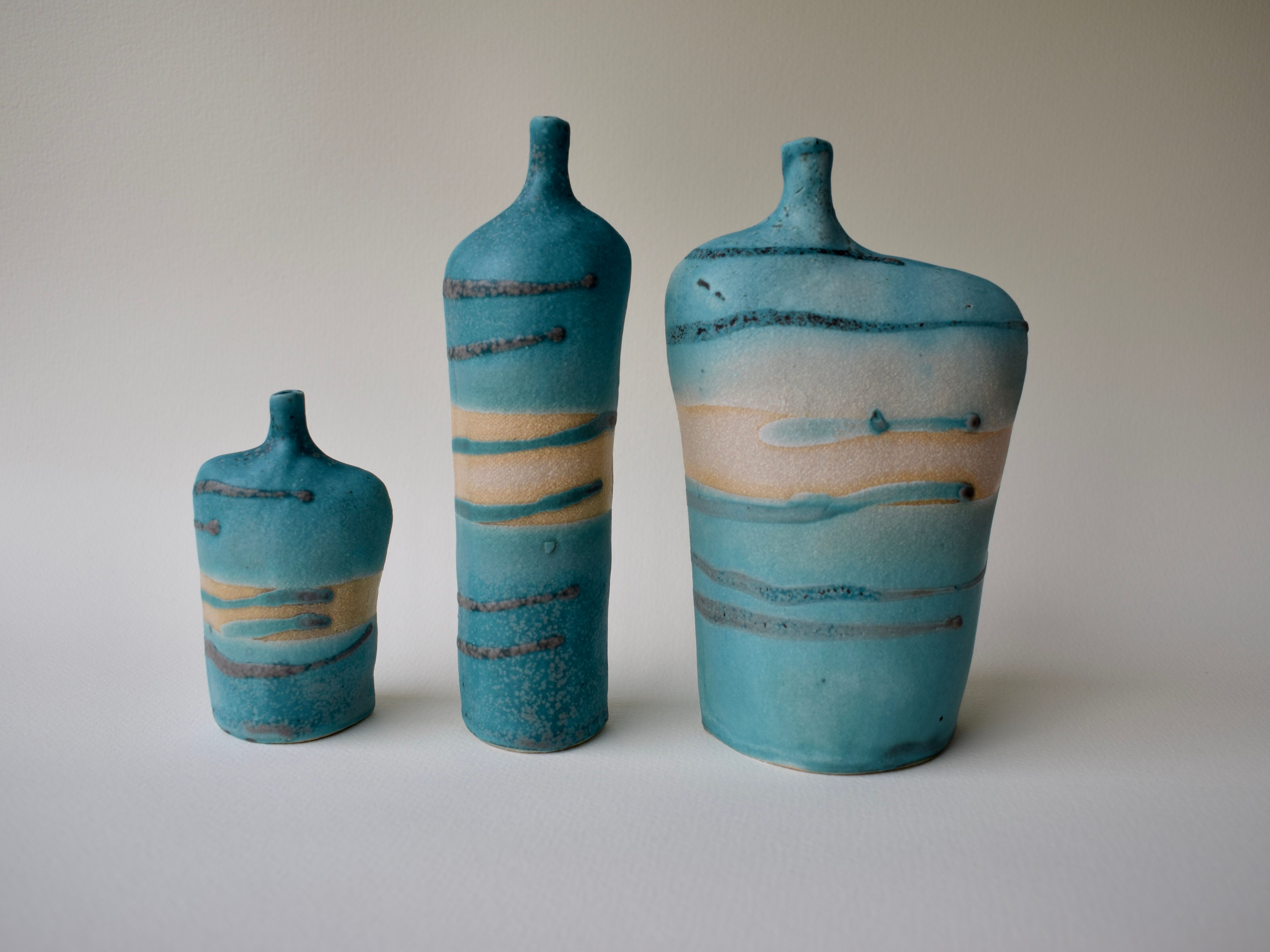 Stoneware bottles in glaze finishes inspired by landscape and seascape. Five sizes available retail prices start at £30.