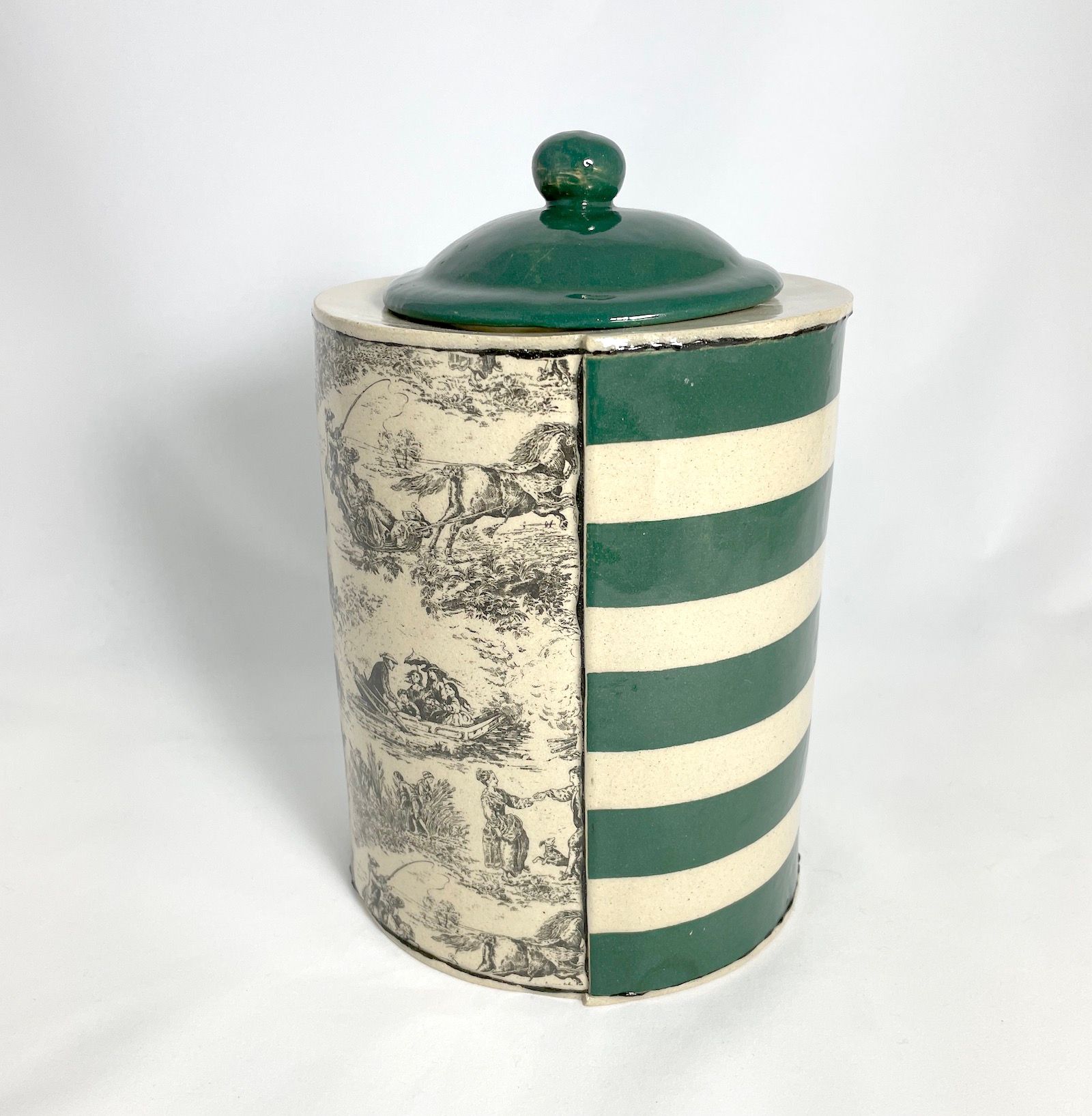 A range of storage vessels in different sizes. Slab built with floral transfer prints.
