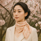 Cherry Blossom captures a very different mood, inspired by time spent in Japan during the fleeting bloom of sakura. Soft petals drift across the design, reflecting themes of beauty, renewal and the gentle reminder to savour each passing moment. It is a scarf that feels calm, elegant and quietly emotional.