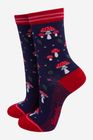 Women's Bamboo Socks - Navy Blue/Red, Toadstools