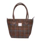 A classic Tote Bag made from Harris Tweed which is both practical and stylish. Genuine leather trims, zip top closure on the main large compartment which is fully lined and has internal pockets. Dimensions approximately 25cm wide x 30cm tall x 12cm deep.