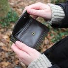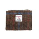 Innovative Coin and Card Wallet/Purse made from Harris Tweed, a functional yet stylish alternative to a traditional wallet. Genuine Leather Trims. Top zip closure to coin purse and stud button fastening to card/receipt slots to ensure your cards and coins remain safe. Dimensions approximately 12cm wide x 9cm tall.